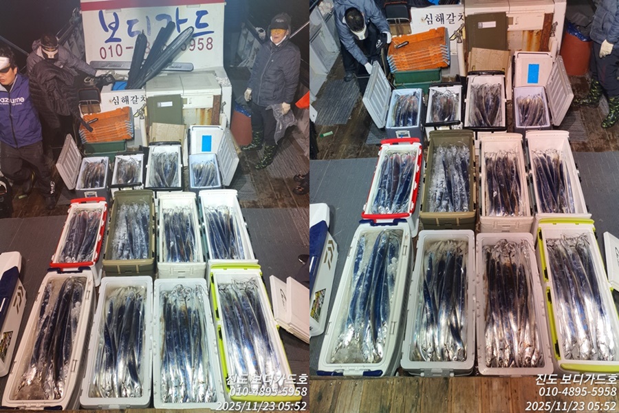 [갈치 조황] #진도보디가드호 #심선장 #왕갈치조황입니다. < 11/26(수) 왕열기 &왕우럭 출조 자리여유 >