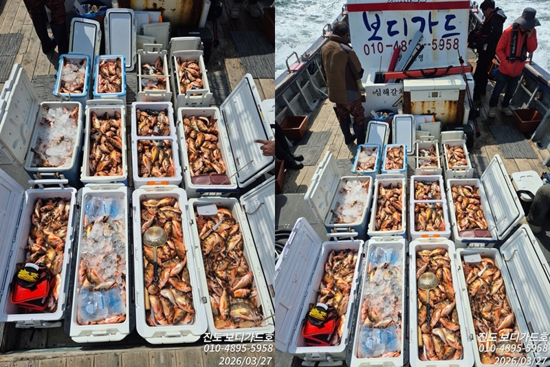 [왕열기/우럭조황] #진도보디가드호 #심선장 #왕열기조황입니다.#3/30(월), 31(화)자리여유 있습니다.